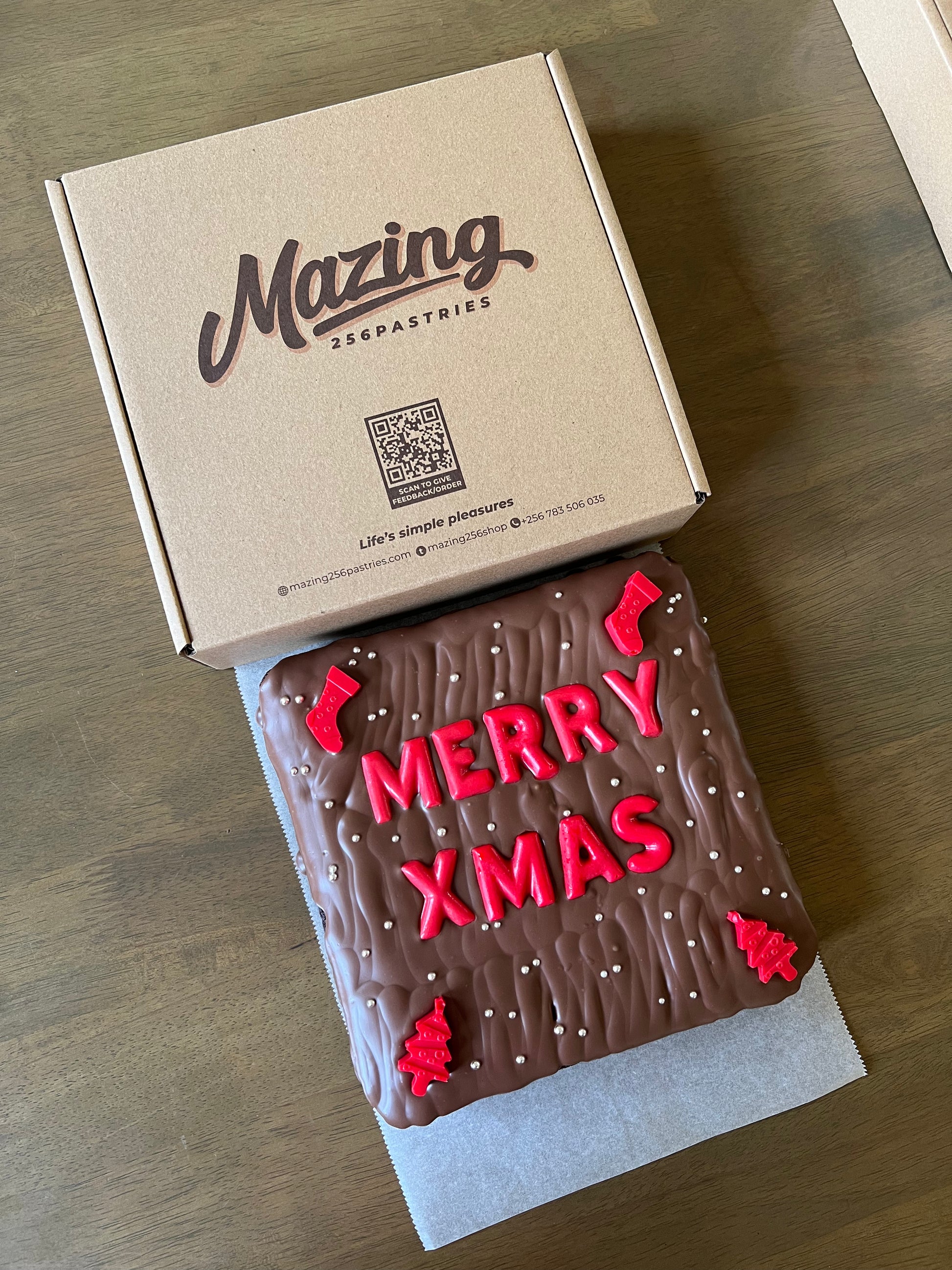 Order our brownie slab with Merry Xmas wording on it